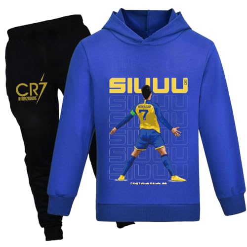Temolie Barn Träningsoveraller huvtröja och joggingbyxor 2-delar pojkar flickor vardaglig fotboll tryck kläder sweatshirt set 4-13 år träningsoverall kläder, BLÅ, 6-7 år