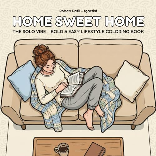 Home Sweet Home: Bold and Easy Coloring Book of Cozy Home Life: Simple Large Print Designs of Relaxing Interiors, Hobbies, and Self-Care for Stress Relief
