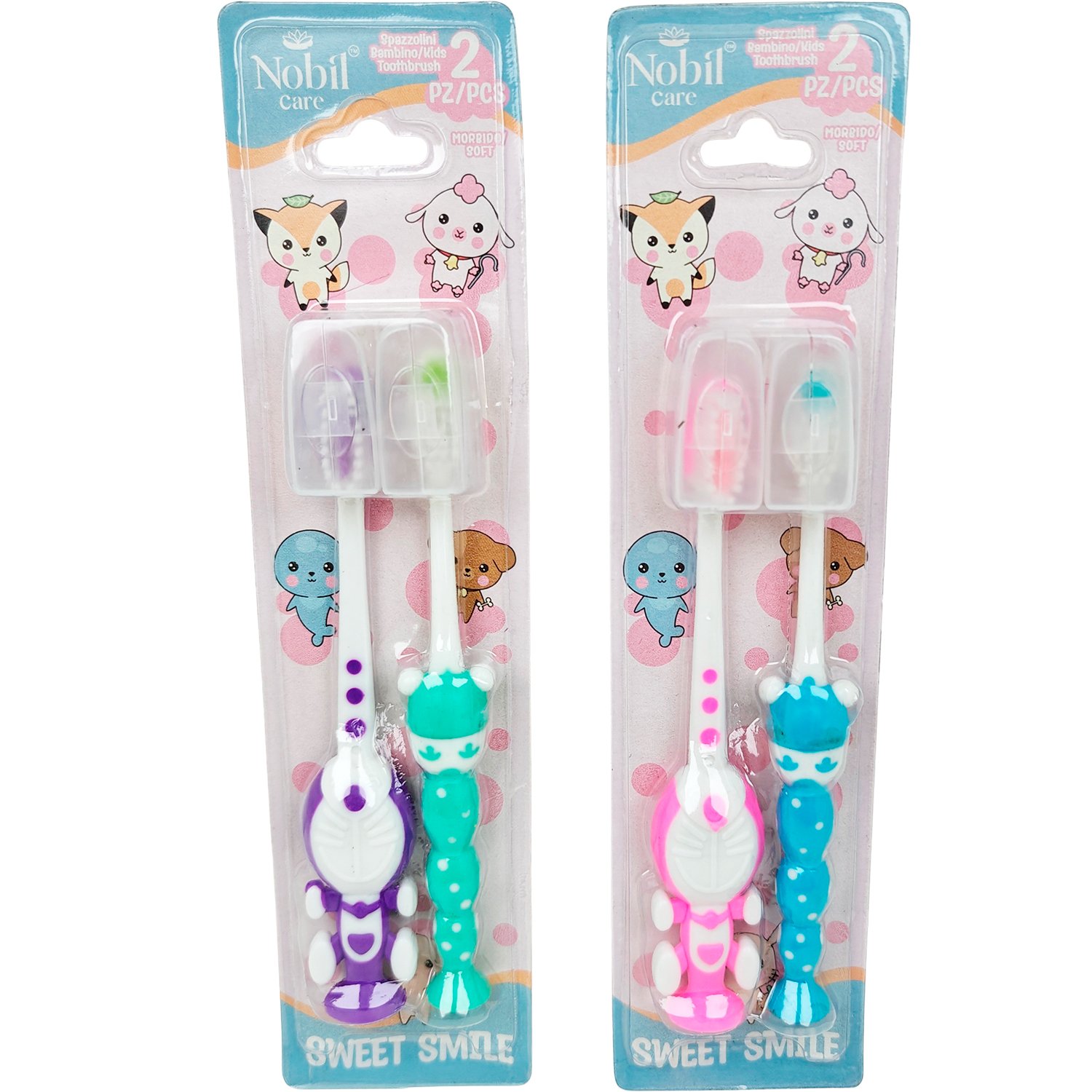 Barntandborstar 2 st. NOBIL CARE Sweet Smile Kids Roliga barntandborstar med sugkopp