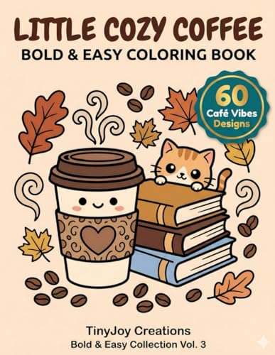 Little Cozy Coffee: Bold & Easy Coloring Book with 60 Relaxing Designs of Café Vibes, Books, Rain, and Sweet Treats