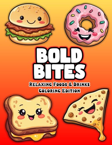 Bold Bites: Relaxing Foods & Drinks Coloring Edition | Unique Bold & Easy Designs with Extra-Thick Outlines of Desserts, Fruits, Coffee, Fast Foods and Sweet Snacks