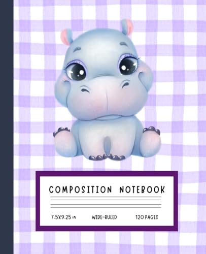 Blue Hippo School Notebook – Sweet Animal Journal for Writing, Drawing, or Notes (120 Pages, 7.5 x 9.25 in, Wide-Ruled): Cute School Supplies for ... Thoughts, Lists, and Creative Expression