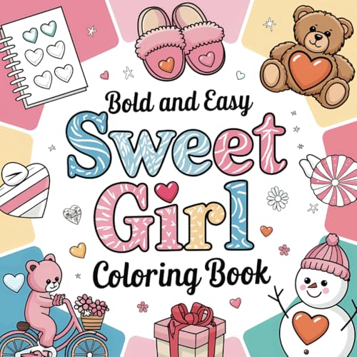 Sweet Girl Coloring Book: 50 Cute & Cozy Designs for Women and Teens | 8.5x8.5 Single-Sided Pages with Bold, Thick Lines: Relax and Unwind with ... Teens Who Love Creative Fun and Stress Relief