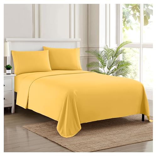 Sweet Home Collection Lyxigt bäddset med platt lakan, 2 örngott, mikrofiber, gul, drottning