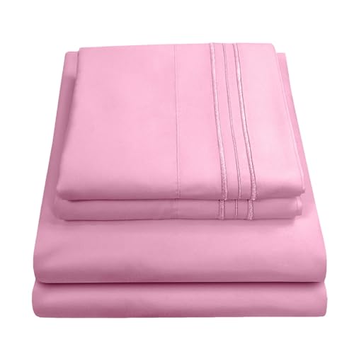 Sweet Home Collection Lyxigt bäddset med platt, dra-på-lakan, 2 örngott, hitta dubbelborstad mikrofiber, rosa, drottning