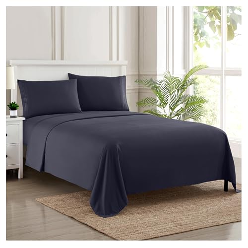 Sweet Home Collection Lyxigt bäddset med platt lakan, 2 örngott, mikrofiber, marinblå, drottning