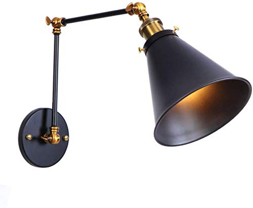 Vägglampa, Justerbar Lång Swing-Arm Vägglampor Belysning Industriell retro Metall E27 Väggmonterad arbetslampa Studie Sovrum Vardagsrum Läsvägglampa, Svart