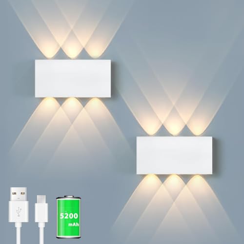Batterivägglampa, med touch-kontrollbrytare LED magnetiskt batteri vägglampa 5 000 mAh trådlös vägglampa 3 lägen ljusstyrkenivåer, perfekt för loft hall sovrum (2 st vit)