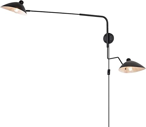 Modern 2-Lights Swing Arm Vägglampa,Modern Plug in Wall Sconces,Vägglampa med plug-in sladd, Mitten av århundradets svängbara långa armar Justerbara inomhusvägglampor, Roterbara svarta vägglampor (1)