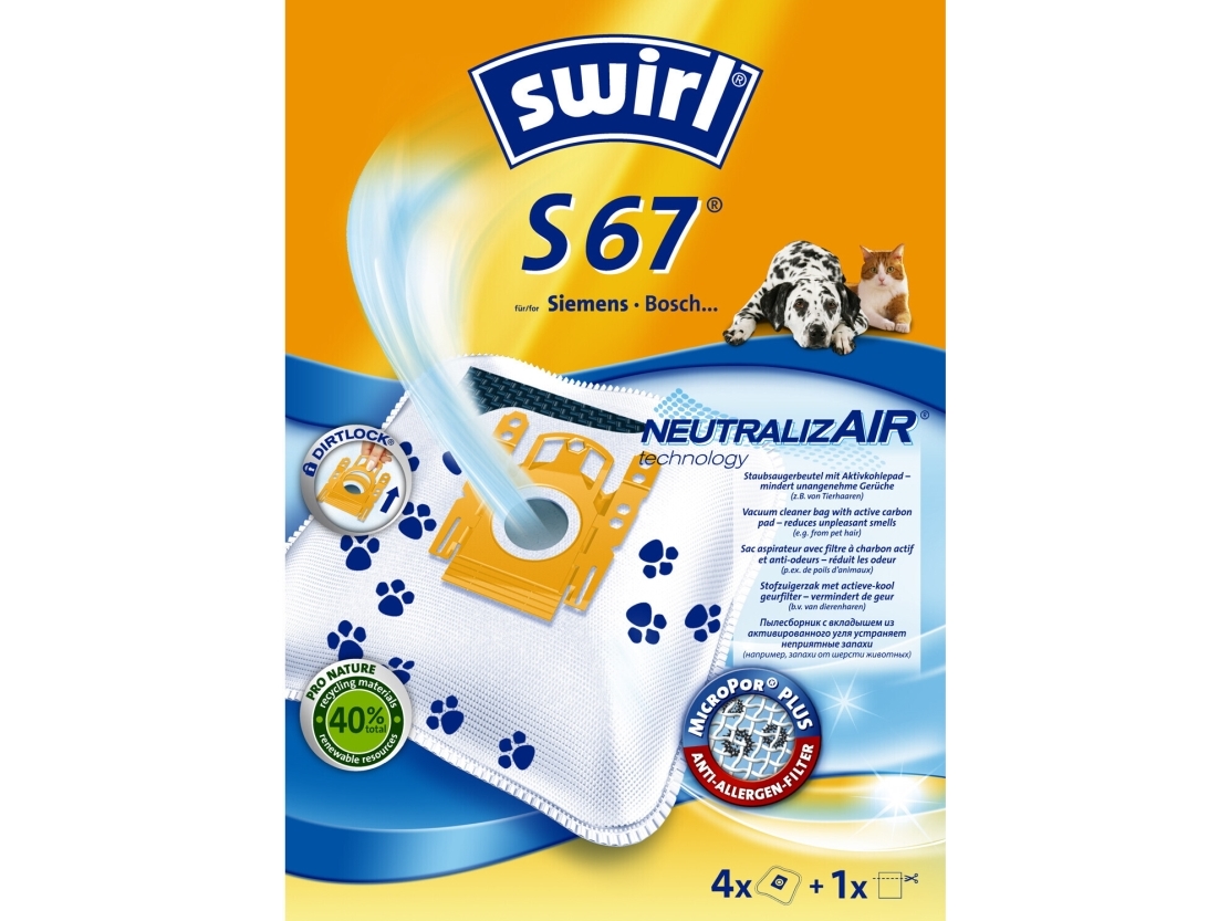 Swirl S 67 Neutralizair, Cylinderdammsugare, Dammpåse, Blå, Vit, 4 Styck