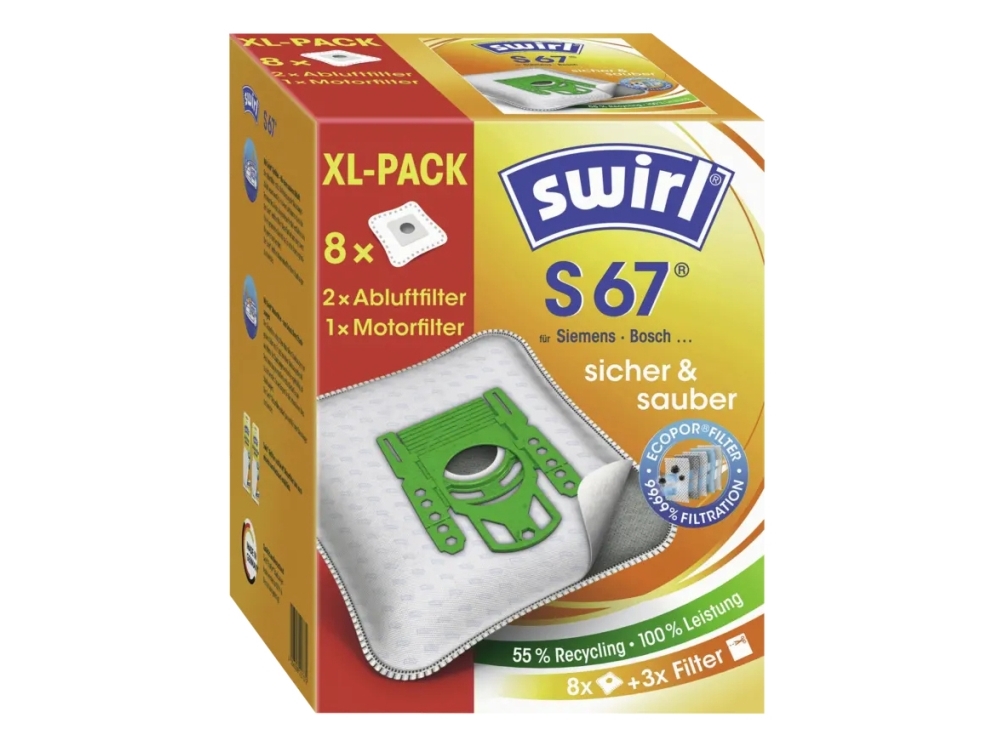 Swirl S 67 Xl Vorteilspack Ecopor, Dammpåse, Cylinderdammsugare, Grön, Vit, Låda, 167 Mm, 225 Mm