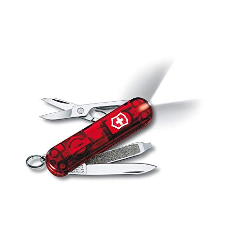 Victorinox Swiss Lite Swiss Army kniv, liten, multiverktyg, 8 funktioner, LED, penna, blå genomskinlig