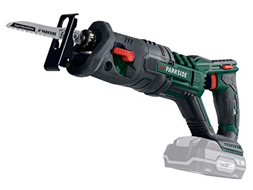 Parkside sladdlös Sabre såg PSSA 20-Li A1 bar enhet endast inget batteri eller laddare medföljer levereras i fodral med 1 x Swiss Made Wood sågblad