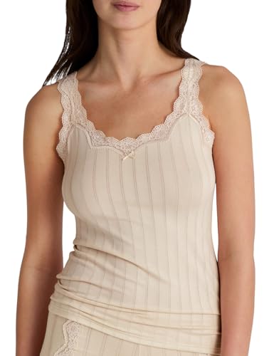 CALIDA Väska Toujours linne dam, med Swiss + bomull kvalitetsförsegling, elegant nålrandig utseende och delikat spets vid urringningen, Mörk beige, 40-42