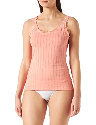 CALIDA Väska Toujours linne dam, med Swiss + bomull kvalitetsförsegling, elegant nålrandig utseende och delikat spets vid urringningen, dahlia coral, 44