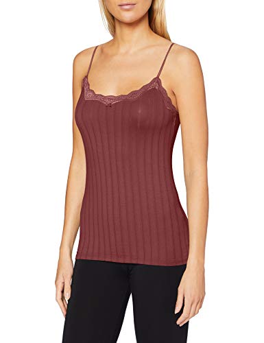 CALIDA Väska Toujours linne dam, med Swiss + bomull kvalitetsförsegling, elegant nålrandig utseende och delikat spets vid urringningen, Pärlrouge, 32-34