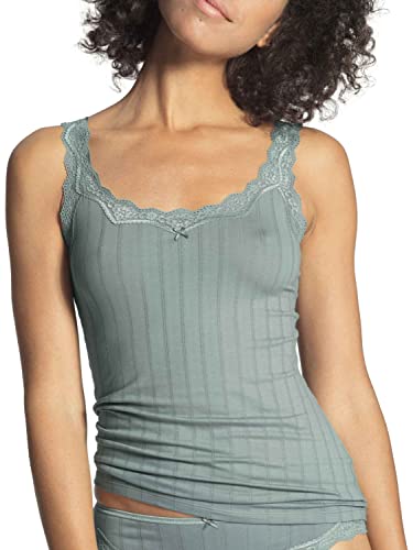 CALIDA Väska Toujours linne dam, med Swiss + bomull kvalitetsförsegling, elegant nålrandig utseende och delikat spets vid urringningen, Eukalyptus, 48-50