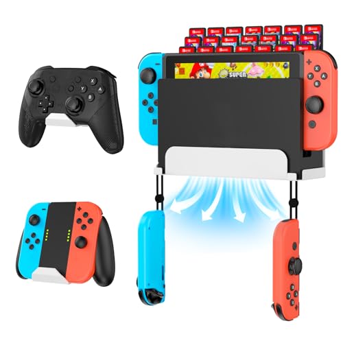 KUNSLUCK Väggfäste för Nintendo Switch med 2 kontroller och 28 spelkortshållare (vit)