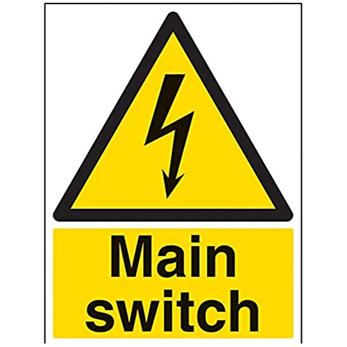 VSafety Signs 68001BC-S "Main Switch" varning elektrisk skylt, självhäftande, porträtt, 300 mm x 400 mm, svart/gul