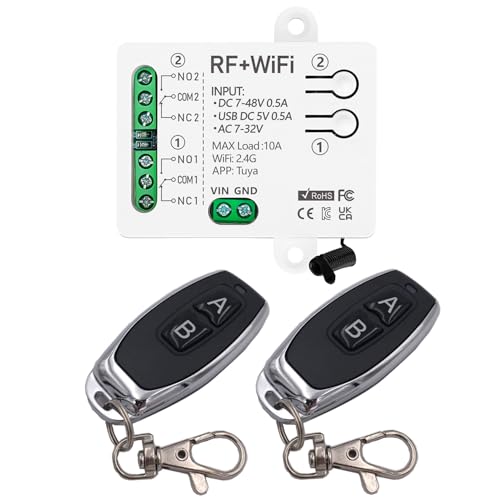 DieseRC 2-kanals wifi smart strömbrytare DC 5V 12V 24V 48V passiv utgång relämodul Tuya APP wifi-kontroll kompatibel med Alexa/Google Home, inching/självlåsande switch