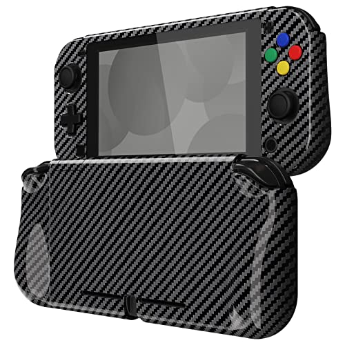 PlayVital ZealProtect Hårt Skal för Nintendo Switch Lite,SkyddsFodral för Switch Lite,Ergonomiskt Protective Case för Switch Lite med Skärmskydd&Tumgrepps&Knappar Kepsar-Grafit Kolfiber