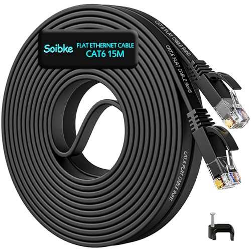Ethernet kabel 15m, Nätverkskabel Cat 6 Platt Ethernet Cable 15m Lång Utomhus Inomhus Lan Cable Hög Hastighet 1Gbps Gigabit Internetkabel Slim Svart RJ45 Patchkabel för Router Switch