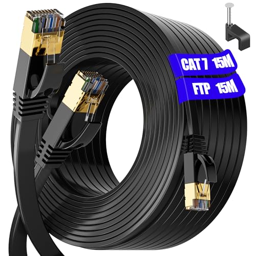 Cat 7 15 m LAN-kabel S/FTP, 10 Gbit/s, PIMF-avskärmning (15 klämmor), Gigabit Ethernet-kabel utomhus inomhus - RJ45-kontakt - switch router