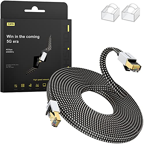Cat8 Ethernet-kabel 8 m, höghastighet, Gigabit, nylonflätad, LAN-nätverk, Cat8 patchkabel, 40 Gbps, 2 000 MHz, RJ45 platt avskärmad kabel, inomhus och utomhus för modem/router/switch, snabbare än Cat5e/Cat6/Cat7