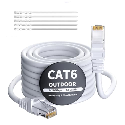 Mygatti CAT 6 Ethernet-kabel 20 meter vit för utomhus- och inomhusbruk, vattentät, direkt läggning, Gigabit-nätverkskabel, UTP, CCA, RJ45 LAN-patchkabel för POE-kamera, router, modem, switch + 25