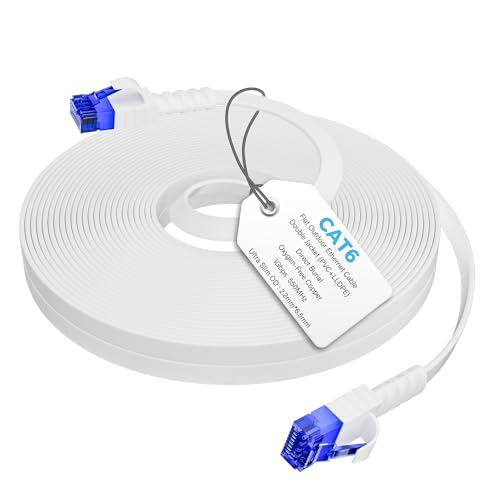 Cat 6 Nätverkskabel 20m, Flat Ethernet Kabel 20m med hög hastighet Gigabit Lång Lan Internetkabel utomhus och inomhus, för hem/router/switch (20 klipp) - snabbare än Cat5/Cat 5E/Falska Cat 7
