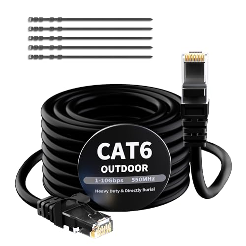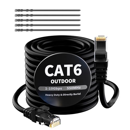 Mygatti CAT 6 Ethernet-kabel 50 meter svart för utomhus- och inomhusbruk, vattentät, direkt läggning, Gigabit-nätverkskabel, UTP, CCA, RJ45 LAN-patchkabel för POE-kamera, router, modem, switch + 25