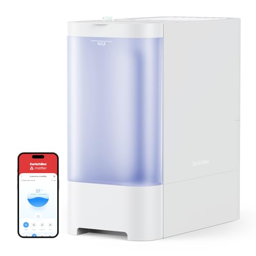 SwitchBot Smart avdunstande luftfuktare för sovrum 4,5 L (1,2 G), 750 ml/h snabbluftfuktare, toppfyllning, luftfuktare, senaste 22,5 timmen, automatisk lufttorkningsfilter, Ag+-teknik, röststyrning,