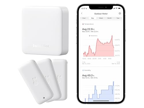 SwitchBot termometer, inomhus- och utomhushygrometer, 3-pack, temperatur- och fuktighetssensor, IP65 vattentät med app notifiering och datalagring, Hub krävs