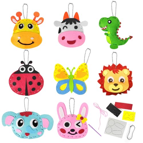 Cosysparks barn syset för barn, 8 Pcak filt syset barn djur sy barn virkning set för nybörjare filt nyckelring filt för nybörjare flickor pojkar