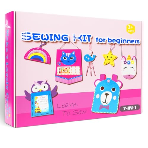Vicloon Första sömnadskit för barn, 7-delad söta barnsömnadssats, roliga sömnad gör-det-själv-kit, introduktion till sömnadskit för barn ålder 5-12 lär dig att sy konst och hantverk