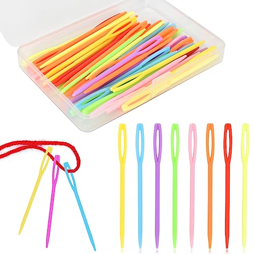50 Bitar Plast Synålar, Stora Eye Nålar, Färgglada Hand Sy Needles Set Garn Stickning Nål Learning Nål för DIY sömnad för barn (7cm)