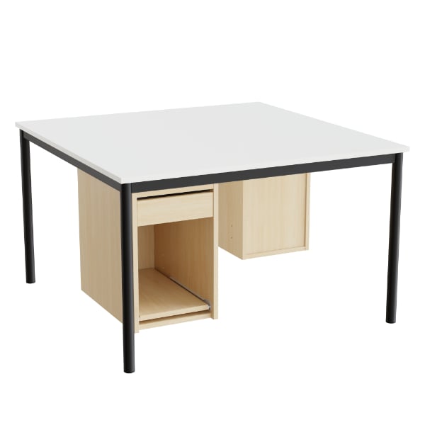 Sybord 134, 1200x1200 mm, höjd 900 mm, björklaminat, vitt stativ