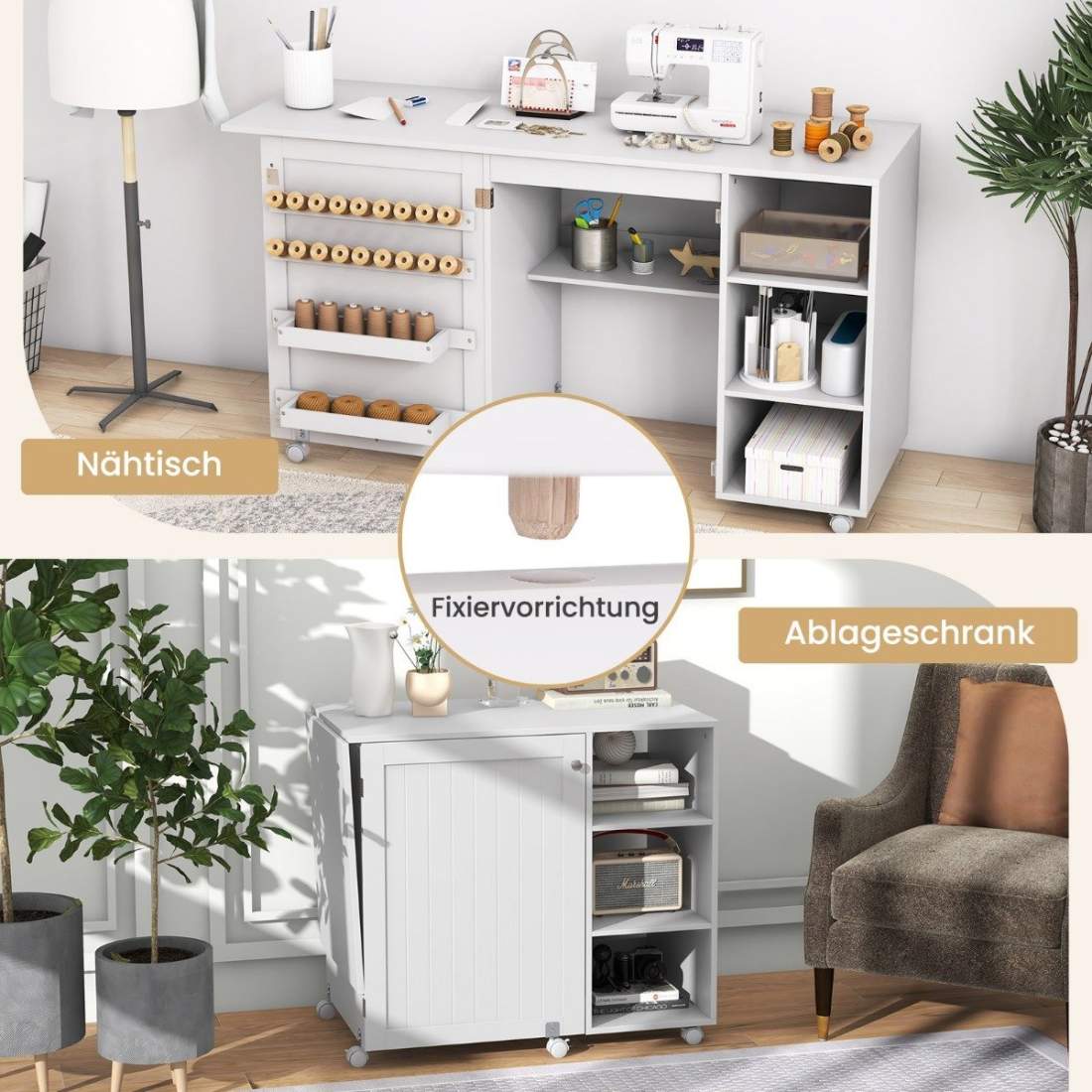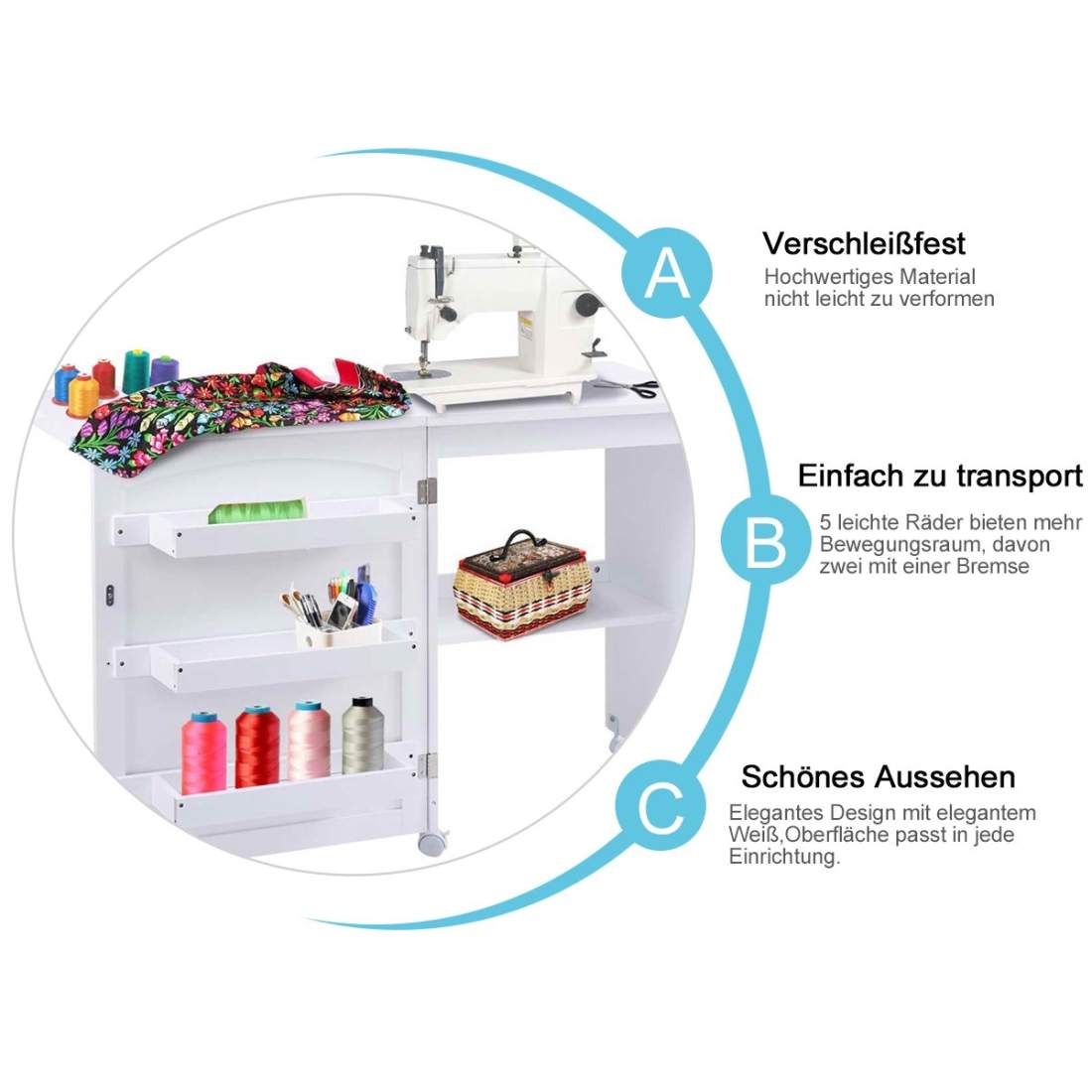 GIANTEX Sömnadsbord vikbart, symaskinbord på hjul, sybord för symaskin, syskåp, trä, universalbord för vardagsrum, arbetsrum, sovrum (vit)