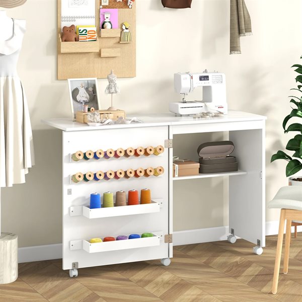 Hopfällbart sybord med förvaring och hjul / Syskåp - Vit