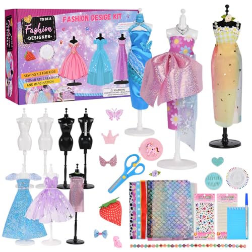 Klever Kit modedesignerkit för flickor, sykit med 4 skyltdockor, kreativitet gör-det-själv-konst och hantverkskit inlärningsleksaker sykit för barn – flickleksaker för ålder 8 9, 10, 11, 12+ år gamla