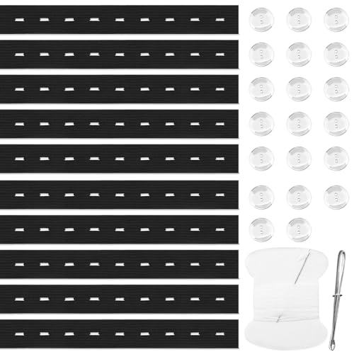 10 st svart elastiskt midjeband, jeans midjedragare verktyg barn midjejusteringsbyxor midjeröjare midjeförlängare tillbehör, byxor knappdragare med 20 knappar, 1 sykit och 1 trådkrok