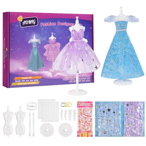 Aomig Fashion Designer Kit för flickor med 2 skyltdockor, 24 st Learn Toys Sykit för barn, Girl Doll Dress Kit, Leksaker Klädtillverkningssats för tonårsflickor Barn Födelsedagspresent Ålder 6-12+