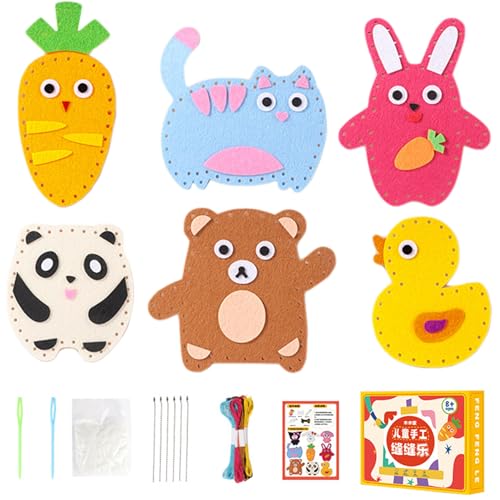 Filt sömnad hantverkskit för barn, 6-pack havsdjur sykit barn sykit för nybörjare rolig gör-det-själv pedagogiskt sömnad hantverk gåva med syverktyg för pojkar flickor