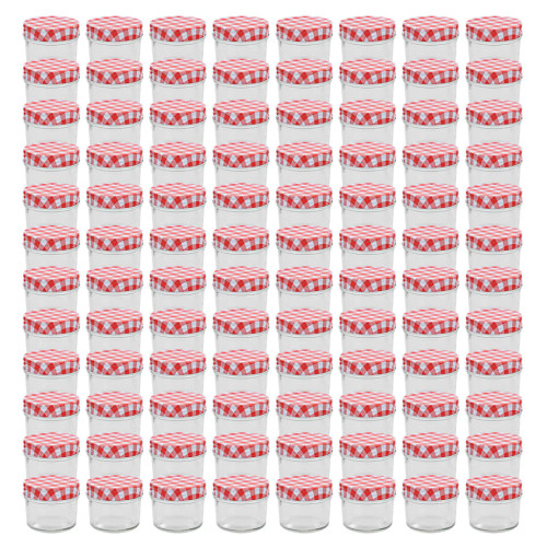 vidaXL Syltburkar i glas med vita och röda lock 96 st 110 ml