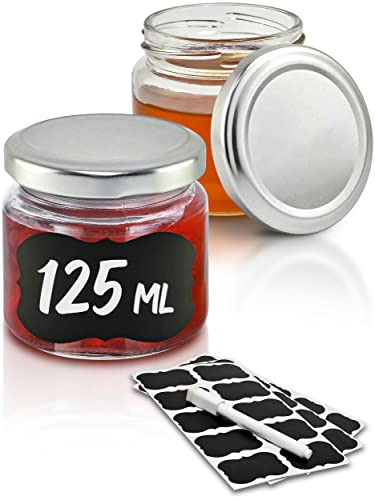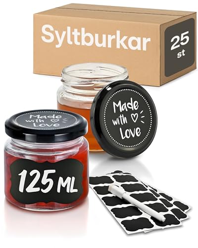 25 syltburkar små 125 ml - med etiketter och penna - lufttäta - diskmaskinssäkra - idealiska för gåvor