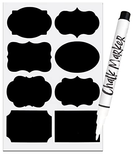 Vattentäta Svarta Burketiketter, 64 St Självhäftande med Avtorkningsbar Kritpenna - För Kökskryddburkar, Syltburkar och Mer