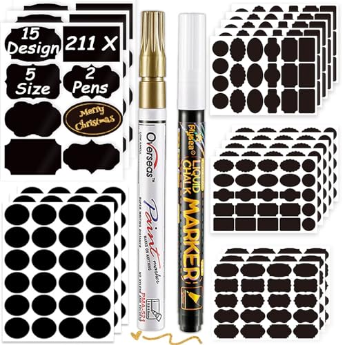 DZSEE® Bordentiketter med självhäftande etiketter, etiketter med självhäftande etiketter för glas, bordsdekaler, universella dekaler för kryddburkar, syltburkar, flaskor i köket| 211st+2 pennor