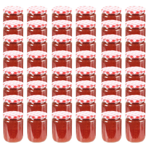 vidaXL Syltburkar i glas med vita och röda lock 48 st 230 ml