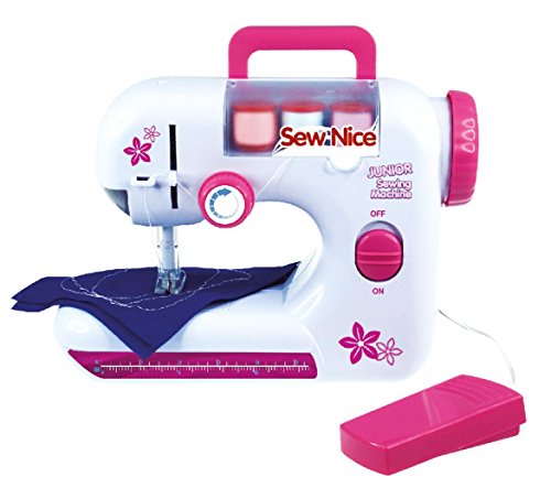 Lena 42521 - Symaskin för barn, batteridriven, med handtag, fotpedal, handhjul, skyddskåpa, strömbrytare, pilotljus, plast, sytråd, nål, måttband, sysats för barn från 8 år och äldre
