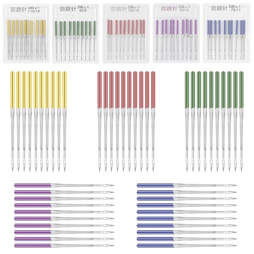Tucnoeu 50 stycken symaskinsnålar universella jerseynålar för symaskin synålar symaskin set för jeans läder tyger 5 storlekar 5 färger